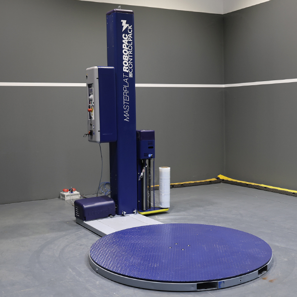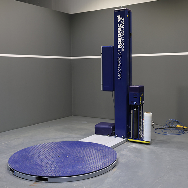 La enfardadora Masterplat Plus PGS con mástil de 2.200 mm y una plataforma de 1.650 mm es una enfardadora de palets flexible y versátil, con un panel de mandos sencillo y práctico, todo lo necesario para enfardar palets de forma eficiente y cómoda. La envolvedora de palets modelo Masterplat de Robopac garantiza un embalado de palets con film estirable uniforme.