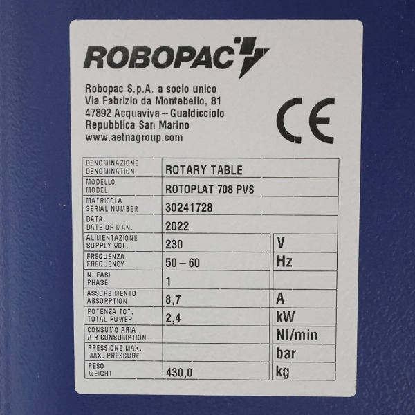 La enfardadora Rotoplat 708 con mástil de 2.200 mm destaca por su gran fiabilidad operativa, simplicidad de uso, facilidad de mantenimiento y por el estricto cumplimiento de las normas de seguridad. Es un referente para el embalaje de final de línea con envolvedoras de mesa, gracias a su construcción robusta y a la amplia gama de configuraciones disponibles.