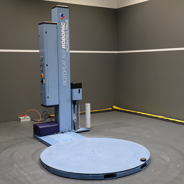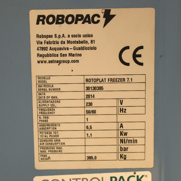 La máquina Rotoplat Freezer 507 PDS con mástil de 2.200 mm pertenece a la gama premium de máquinas Robopac diseñadas para realizar su actividad hasta una temperatura de -20º.