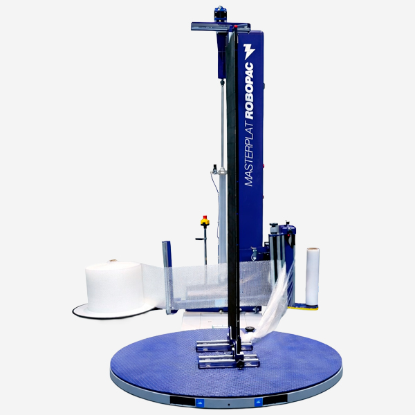 La Masterplat Plus FRD para puertas y ventanas es la solución ideal para el embalaje seguro de productos de carpintería, garantizando protección y estabilidad en cada ciclo de trabajo. Esta máquina permite aplicar de manera automática material protector como plástico de burbujas, espuma o film estirable, evitando daños durante transporte y almacenamiento.