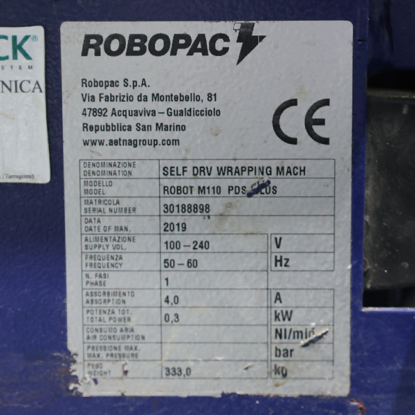 Robot Master Plus 110 PDS en perfecto estado. Destaca por ser eficiente para envolver palets con film estirable, equipado con un motor eléctrico y tecnología de preestiraje ajustable.